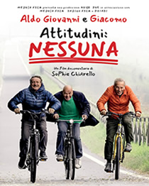 Attitudini: nessuna" è il titolo di un documentario del 2025 su Aldo, Giovanni e Giacomo che ripercorre i 30 anni di amicizia e carriera del trio comico italiano. Non ha una trama tradizionale, ma racconta le origini, i successi e i momenti chiave della loro comicità attraverso filmati d'archivio, aneddoti personali e interviste .
